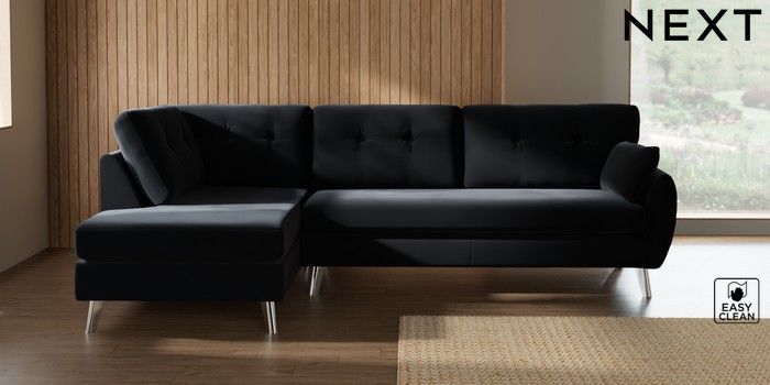 7.3.1 Buy Wilson Buttoned Back Large Corner Chaise - Left Hand Plush Velvet Easy Clean Charcoal Grey Metal Tapered - Chrome from the Next UK online shop Click here to use our accessible website