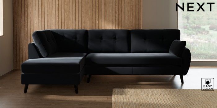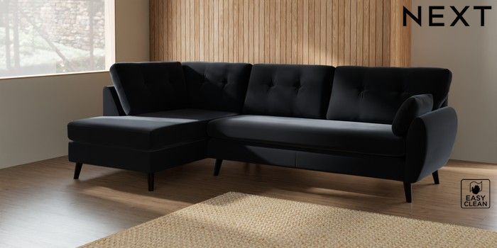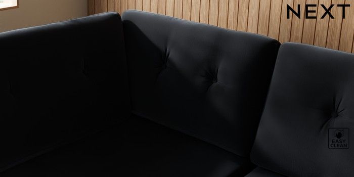 7.3.1 Buy Wilson Buttoned Back Large Corner Chaise - Left Hand Plush Velvet Easy Clean Charcoal Grey Retro Tapered - Dark from the Next UK online shop Click here to use our accessible website