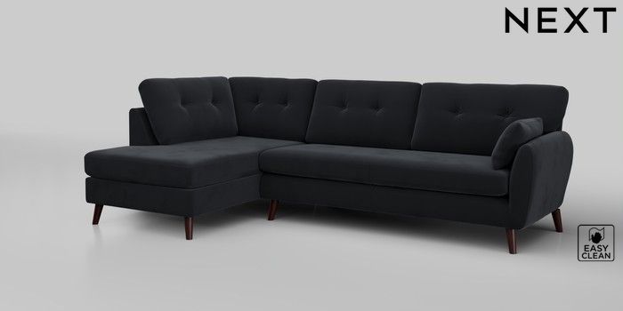 6.12.1 Buy Wilson Buttoned Back Large Corner Chaise - Left Hand Plush Velvet Easy Clean Charcoal Grey Retro Tapered - Dark Brown from the Next UK online shop Click here to use our accessible website