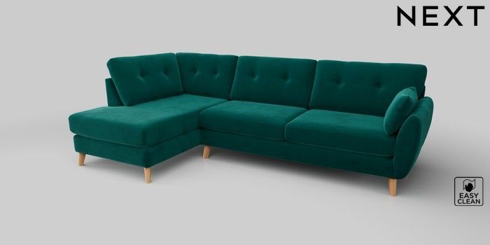 6.12.1 Buy Wilson Buttoned Back Large Corner Chaise - Left Hand Plush Velvet Easy Clean Juniper Green Retro Tapered - Light from the Next UK online shop Click here to use our accessible website