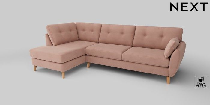 6.12.1 Buy Wilson Buttoned Back Large Corner Chaise - Left Hand Plush Velvet Easy Clean Mid Natural Retro Tapered - Light from the Next UK online shop Click here to use our accessible website