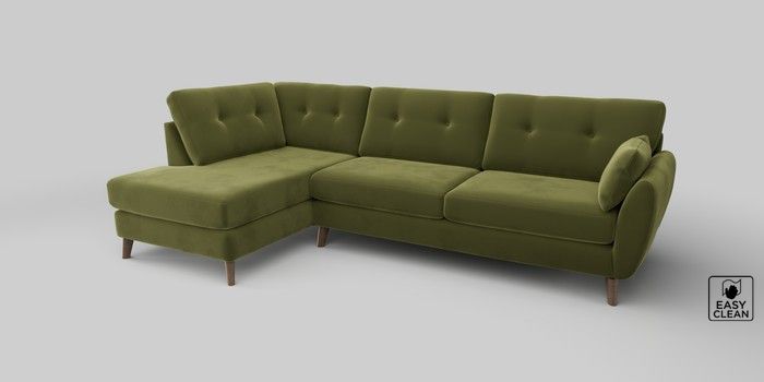 6.12.13 Buy Wilson Buttoned Back Large Corner Chaise - Left Hand Plush Velvet Easy Clean Mid Olive Green Retro Tapered - Mid from the Next UK online shop Click here to use our accessible website