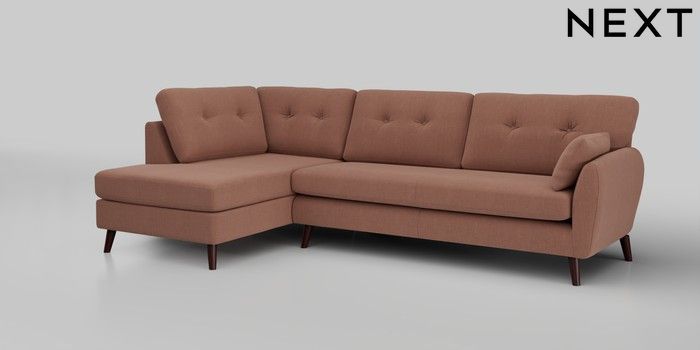 6.12.1 Buy Wilson Buttoned Back Large Corner Chaise - Left Hand Relaxed Linen Look Light Rust Brown Retro Tapered - Dark Brown from the Next UK online shop Click here to use our accessible website
