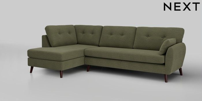 6.12.1 Buy Wilson Buttoned Back Large Corner Chaise - Left Hand Ripple Chenille Mid Moss Green Retro Tapered - Dark Brown from the Next UK online shop Click here to use our accessible website