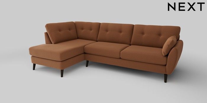 6.12.1 Buy Wilson Buttoned Back Large Corner Chaise - Left Hand Ripple Chenille Mid Rust Brown Retro Tapered - Dark from the Next UK online shop Click here to use our accessible website