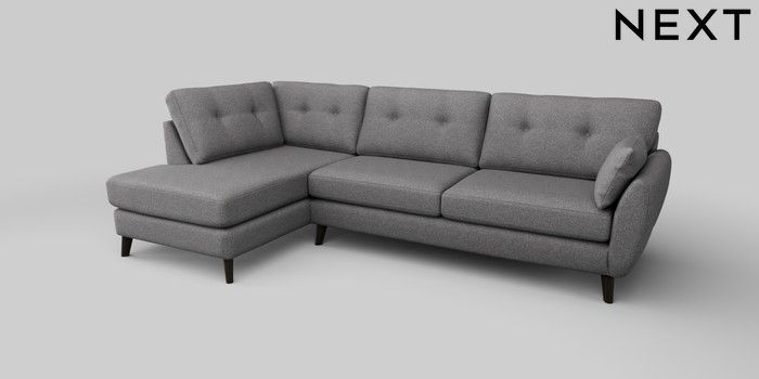 6.12.1 Buy Wilson Buttoned Back Large Corner Chaise - Left Hand Studio Chenille Mid Grey Retro Tapered - Dark from the Next UK online shop Click here to use our accessible website