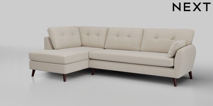 6.12.1 Buy Wilson Buttoned Back Large Corner Chaise - Left Hand Studio Chenille Oyster Retro Tapered - Dark Brown from the Next UK online shop Click here to use our accessible website