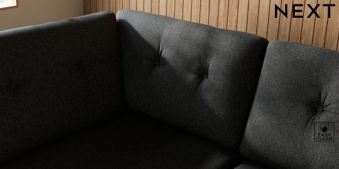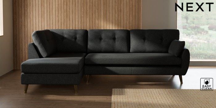 7.3.1 Buy Wilson Buttoned Back Large Corner Chaise - Left Hand Tweedy Blend Easy Clean Charcoal Grey Low Retro Tapered Metal Cap - Mid from the Next UK online shop Click here to use our accessible website