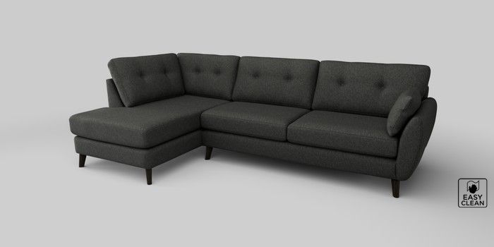 6.12.1 Buy Wilson Buttoned Back Large Corner Chaise - Left Hand Tweedy Blend Easy Clean Charcoal Grey Retro Tapered - Dark from the Next UK online shop Click here to use our accessible website