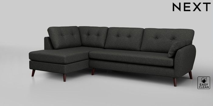 6.12.1 Buy Wilson Buttoned Back Large Corner Chaise - Left Hand Tweedy Blend Easy Clean Charcoal Grey Retro Tapered - Dark Brown from the Next UK online shop Click here to use our accessible website