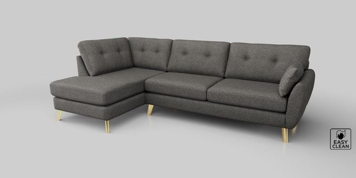 6.12.13 Buy Wilson Buttoned Back Large Corner Chaise - Left Hand Tweedy Blend Easy Clean Dark Grey Metal Tapered - Gold from the Next UK online shop Click here to use our accessible website