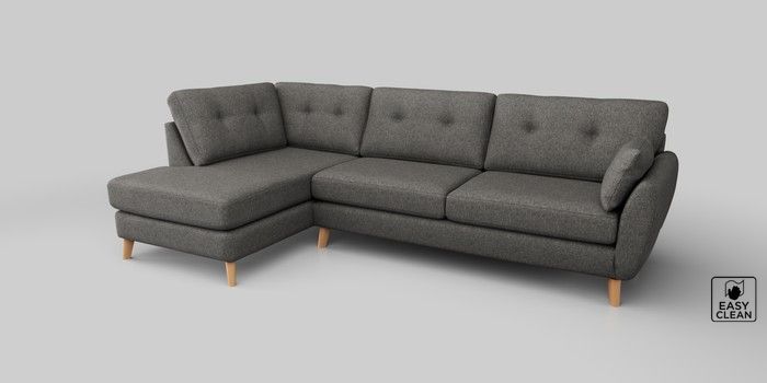 6.12.1 Buy Wilson Buttoned Back Large Corner Chaise - Left Hand Tweedy Blend Easy Clean Dark Grey Retro Tapered - Light from the Next UK online shop Click here to use our accessible website