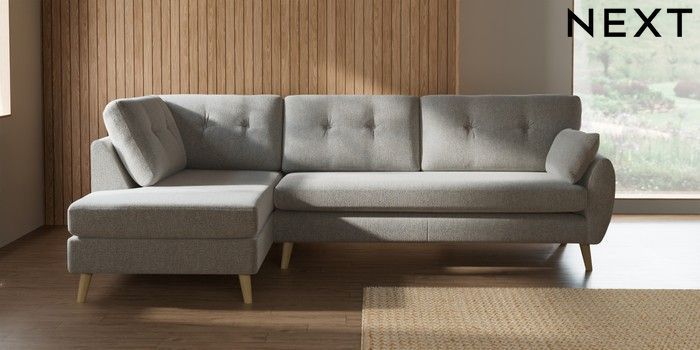 7.3.1 Buy Wilson Buttoned Back Large Corner Chaise - Left Hand Multi Weave Light Blue Retro Tapered - Light from the Next UK online shop Click here to use our accessible website