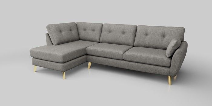 6.12.13 Buy Wilson Buttoned Back Large Corner Chaise - Left Hand Tweedy Chenille Mid Grey Metal Tapered - Gold from the Next UK online shop Click here to use our accessible website