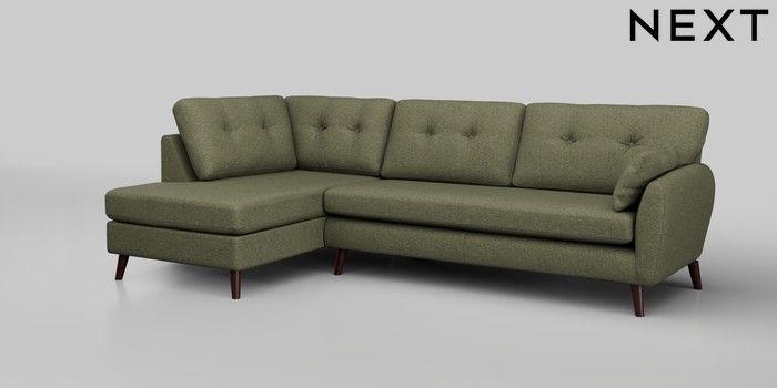 6.12.1 Buy Wilson Buttoned Back Large Corner Chaise - Left Hand Tweedy Chenille Mid Moss Green Retro Tapered - Dark Brown from the Next UK online shop Click here to use our accessible website