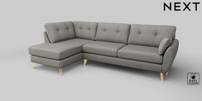 6.12.13 Buy Wilson Buttoned Back Large Corner Chaise - Left Hand Woven Chenille Easy Clean Light Grey Metal Tapered - Gold from the Next UK online shop Click here to use our accessible website