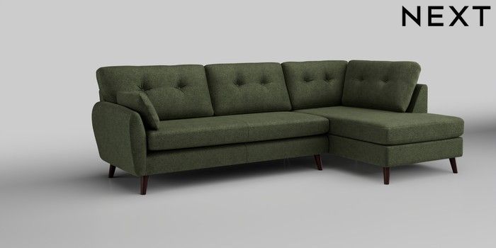 6.12.1 Buy Wilson Buttoned Back Large Corner Chaise - Right Hand Boucle Chenille Dark Moss Green Retro Tapered - Dark Brown from the Next UK online shop Click here to use our accessible website