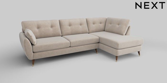 6.12.13 Buy Wilson Buttoned Back Large Corner Chaise - Right Hand Boucle Chenille Oyster Low Retro Tapered Metal Cap - Mid from the Next UK online shop Click here to use our accessible website