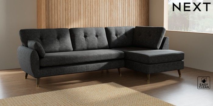 7.3.1 Buy Wilson Buttoned Back Large Corner Chaise - Right Hand Boucle Weave Easy Clean Charcoal Grey Low Retro Tapered Metal Cap - Mid from the Next UK online shop Click here to use our accessible website