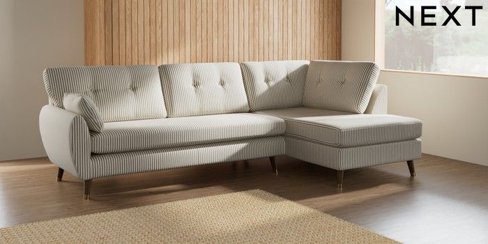 7.2.10 Buy Wilson Buttoned Back Large Corner Chaise - Right Hand Chenille Stripe Moss Green Low Retro Tapered Metal Cap - Mid from the Next UK online shop Click here to use our accessible website