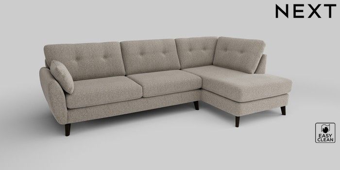 6.12.1 Buy Wilson Buttoned Back Large Corner Chaise - Right Hand Chunky Boucle Easy Clean Dove Retro Tapered - Dark from the Next UK online shop Click here to use our accessible website