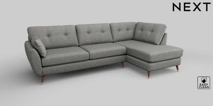 6.12.13 Buy Wilson Buttoned Back Large Corner Chaise - Right Hand Chunky Boucle Easy Clean Mid Grey Low Retro Tapered Metal Cap - Mid from the Next UK online shop Click here to use our accessible website