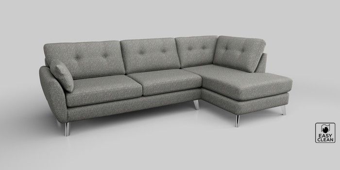6.12.1 Buy Wilson Buttoned Back Large Corner Chaise - Right Hand Chunky Boucle Easy Clean Mid Grey Metal Tapered - Chrome from the Next UK online shop Click here to use our accessible website