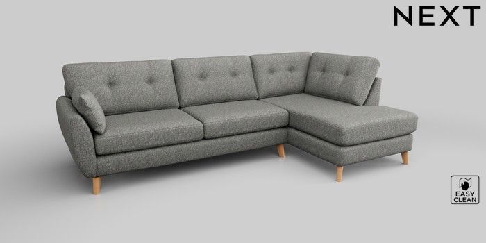 6.12.1 Buy Wilson Buttoned Back Large Corner Chaise - Right Hand Chunky Boucle Easy Clean Mid Grey Retro Tapered - Light from the Next UK online shop Click here to use our accessible website