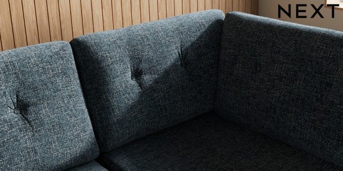 7.3.1 Buy Wilson Buttoned Back Large Corner Chaise - Right Hand Chunky Chenille Dark Navy Blue Retro Tapered - Light from the Next UK online shop Click here to use our accessible website