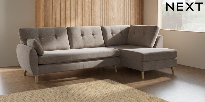 7.2.10 Buy Wilson Buttoned Back Large Corner Chaise - Right Hand Chunky Chenille Light Dove Retro Tapered - Light from the Next UK online shop Click here to use our accessible website