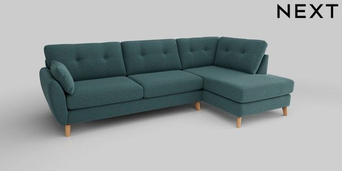 6.12.13 Buy Wilson Buttoned Back Large Corner Chaise - Right Hand Chunky Chenille Mid Teal Green Retro Tapered - Light from the Next UK online shop Click here to use our accessible website