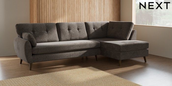 7.2.10 Buy Wilson Buttoned Back Large Corner Chaise - Right Hand Chunky Chenille Mink Brown Retro Tapered - Mid from the Next UK online shop Click here to use our accessible website