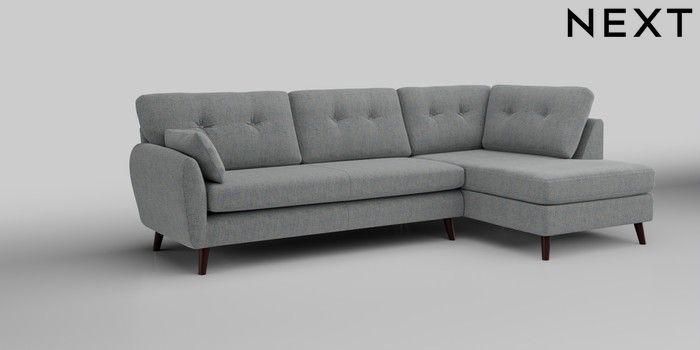 6.12.1 Buy Wilson Buttoned Back Large Corner Chaise - Right Hand Chunky Marl Mid Grey Retro Tapered - Dark Brown from the Next UK online shop Click here to use our accessible website