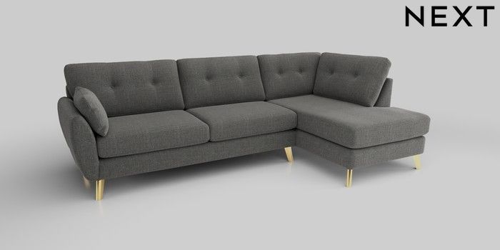 6.12.1 Buy Wilson Buttoned Back Large Corner Chaise - Right Hand Chunky Texture Dark Grey Metal Tapered - Gold from the Next UK online shop Click here to use our accessible website