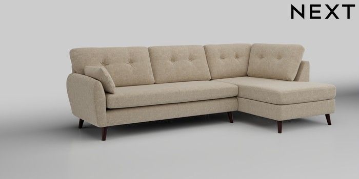 6.12.1 Buy Wilson Buttoned Back Large Corner Chaise - Right Hand Chunky Weave Cream Retro Tapered - Dark Brown from the Next UK online shop Click here to use our accessible website