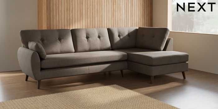 7.2.10 Buy Wilson Buttoned Back Large Corner Chaise - Right Hand Chunky Weave Dark Natural Retro Tapered - Mid from the Next UK online shop Click here to use our accessible website