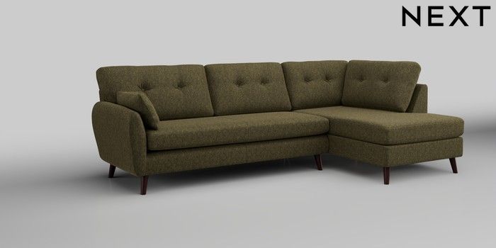 6.12.1 Buy Wilson Buttoned Back Large Corner Chaise - Right Hand Cotswold Chenille Dark Green Retro Tapered - Dark Brown from the Next UK online shop Click here to use our accessible website