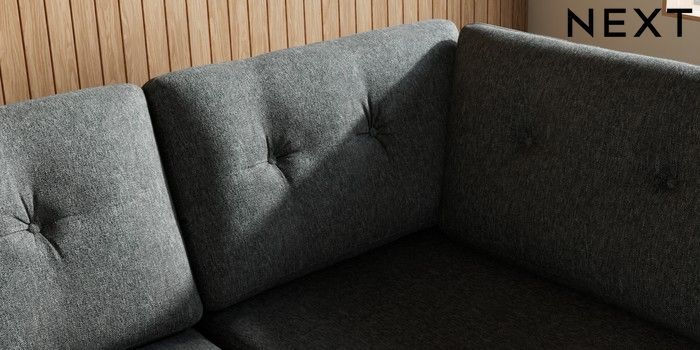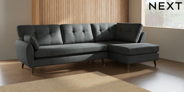 7.3.1 Buy Wilson Buttoned Back Large Corner Chaise - Right Hand Cotswold Chenille Dark Grey Low Retro Tapered Metal Cap - Mid from the Next UK online shop Click here to use our accessible website