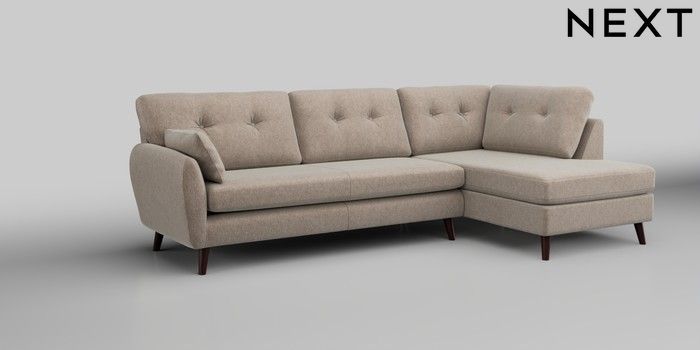 6.12.1 Buy Wilson Buttoned Back Large Corner Chaise - Right Hand Cotswold Chenille Light Natural Retro Tapered - Dark Brown from the Next UK online shop Click here to use our accessible website
