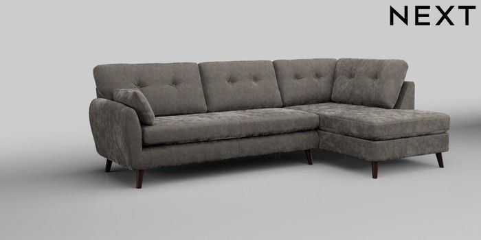 6.12.1 Buy Wilson Buttoned Back Large Corner Chaise - Right Hand Distressed Velour French Grey Retro Tapered - Dark Brown from the Next UK online shop Click here to use our accessible website