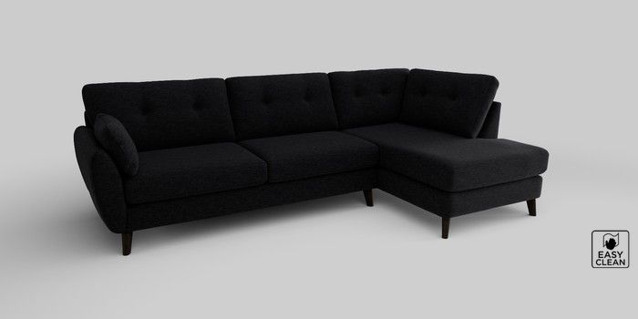 6.12.13 Buy Wilson Buttoned Back Large Corner Chaise - Right Hand Fine Chenille Easy Clean Black Retro Tapered - Dark from the Next UK online shop Click here to use our accessible website