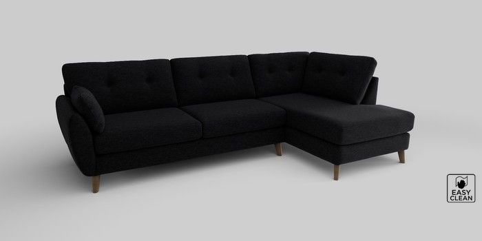 6.12.1 Buy Wilson Buttoned Back Large Corner Chaise - Right Hand Fine Chenille Easy Clean Black Retro Tapered - Mid from the Next UK online shop Click here to use our accessible website