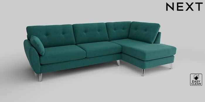 6.12.1 Buy Wilson Buttoned Back Large Corner Chaise - Right Hand Fine Chenille Easy Clean Dark Juniper Green Metal Tapered - Chrome from the Next UK online shop Click here to use our accessible website