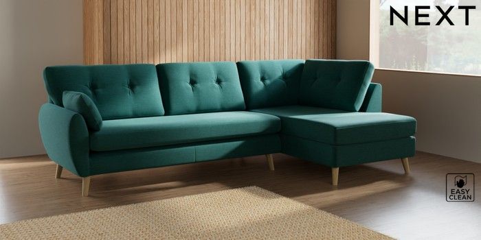 7.2.10 Buy Wilson Buttoned Back Large Corner Chaise - Right Hand Fine Chenille Easy Clean Dark Juniper Green Retro Tapered - Light from the Next UK online shop Click here to use our accessible website