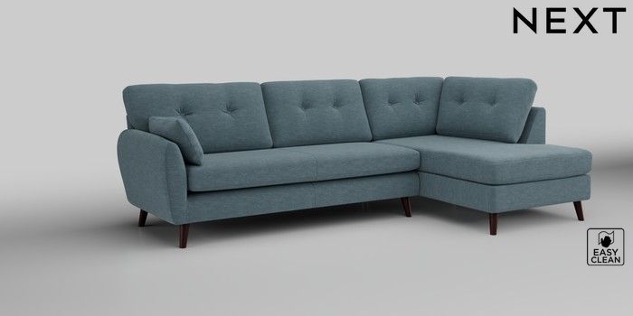 6.12.1 Buy Wilson Buttoned Back Large Corner Chaise - Right Hand Fine Chenille Easy Clean Mid Blue Retro Tapered - Dark Brown from the Next UK online shop Click here to use our accessible website