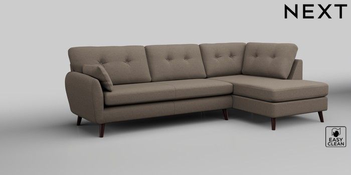 6.12.1 Buy Wilson Buttoned Back Large Corner Chaise - Right Hand Fine Chenille Easy Clean Mid Taupe Brown Retro Tapered - Dark Brown from the Next UK online shop Click here to use our accessible website