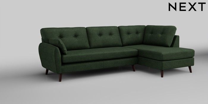 6.12.1 Buy Wilson Buttoned Back Large Corner Chaise - Right Hand Luxe Chenille Dark Green Retro Tapered - Dark Brown from the Next UK online shop Click here to use our accessible website