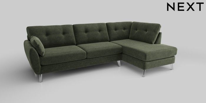 6.12.1 Buy Wilson Buttoned Back Large Corner Chaise - Right Hand Luxe Chenille Mid Green Metal Tapered - Chrome from the Next UK online shop Click here to use our accessible website
