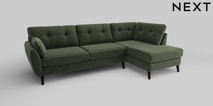 6.12.1 Buy Wilson Buttoned Back Large Corner Chaise - Right Hand Luxe Chenille Mid Green Retro Tapered - Dark from the Next UK online shop Click here to use our accessible website