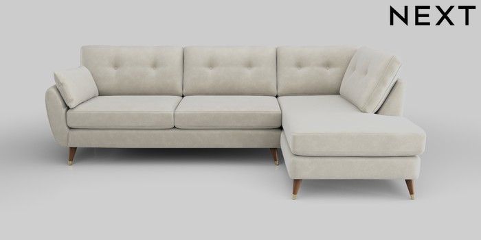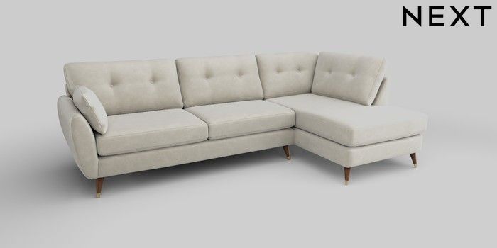 7.0.3 Buy Wilson Buttoned Back Large Corner Chaise - Right Hand Luxe Chenille Oyster Low Retro Tapered Metal Cap - Mid from the Next UK online shop Click here to use our accessible website